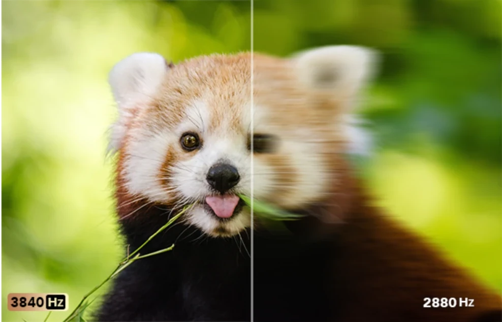 Experience crystal-clear visuals with cutting-edge 3840Hz High Refresh Rate Technology. Say goodbye to screen flickering, ensuring eye protection and delivering seamless motion for an unparalleled viewing experience.